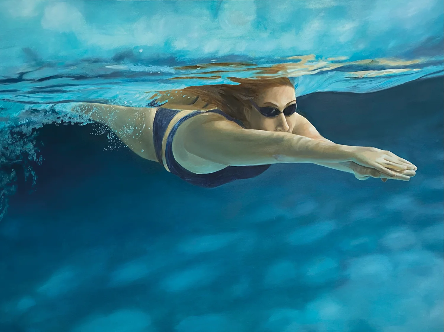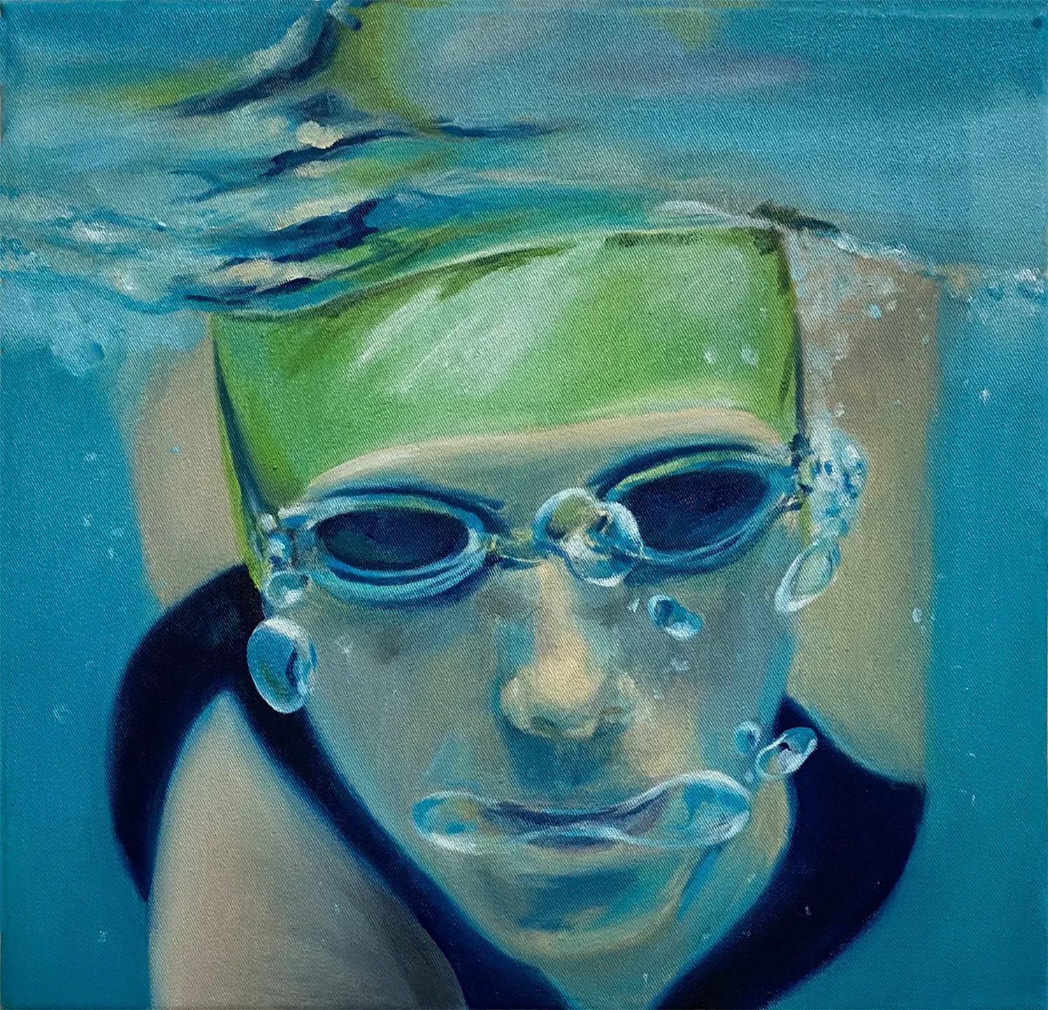 Weil sie selbst gerne und viel schwimmt, kennt sie den Moment des Eintauchens – wenn Geräusche verschwimmen, Farben sich verdichten und die Orientierung kurz ins Wanken gerät. In ihren Arbeiten versucht sie, genau diese Grenzzone festzuhalten: den Übergang zwischen Oberfläche und Tiefe, zwischen Klarheit und Verzerrung.